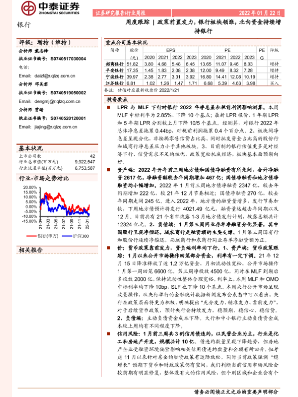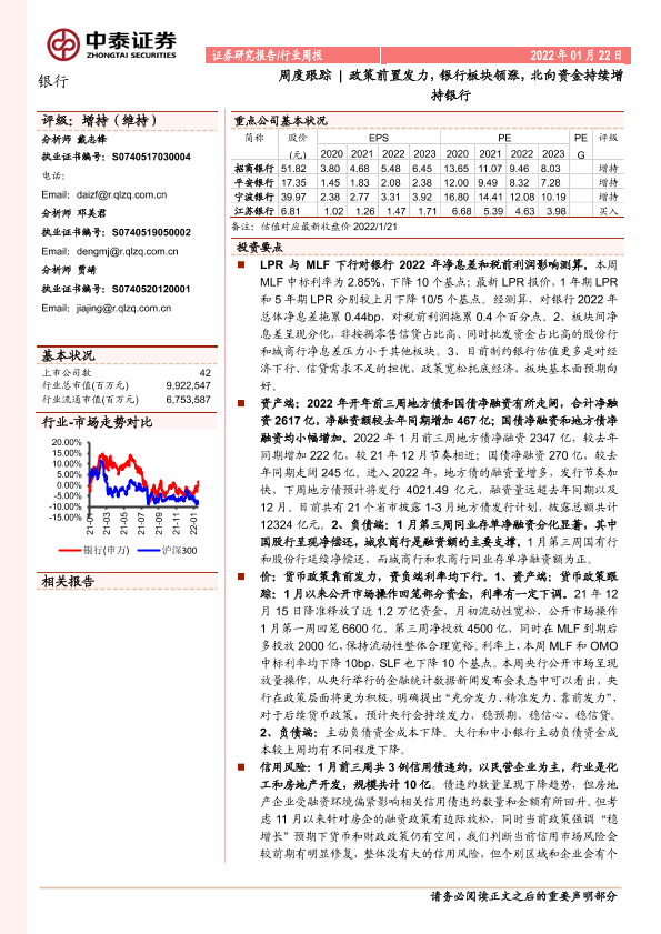 【中泰证券】【20220122】银行周度跟踪:政策前置发力,银行板块领涨,北向资金持续增持银行-17页