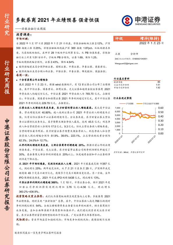 【申港证券】【20220123】非银金融行业周报:多数券商2021年业绩预喜强者恒强-12页