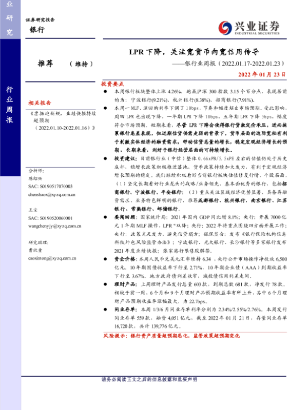 【兴业证券】【20220123】LPR下降,关注宽货币向宽信用传导-15页