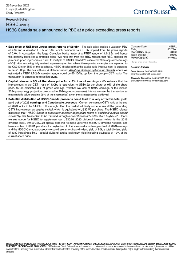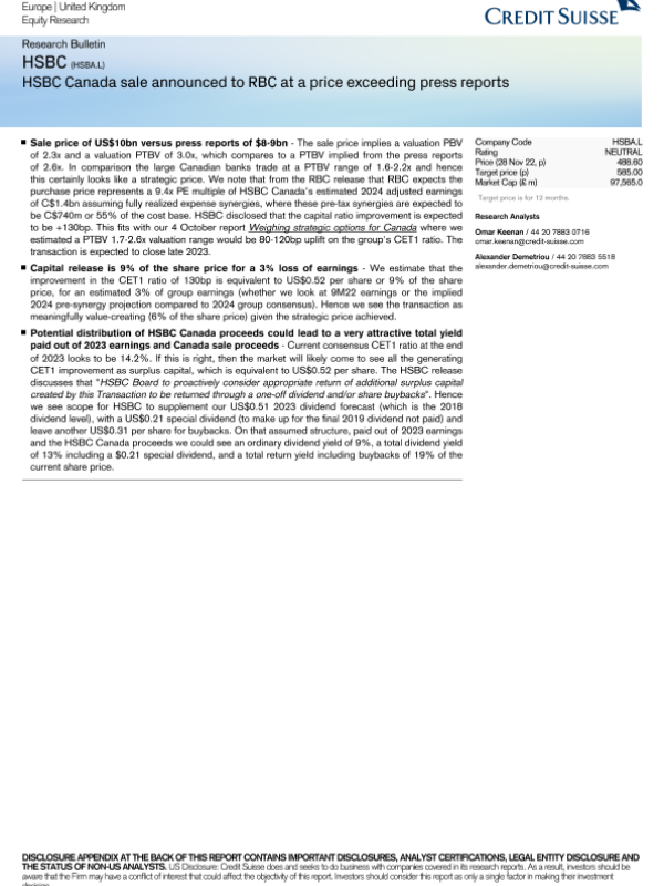 【Credit Suisse】【20221129】HSBC (HSBA.L) - 研究简报-5页