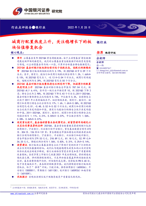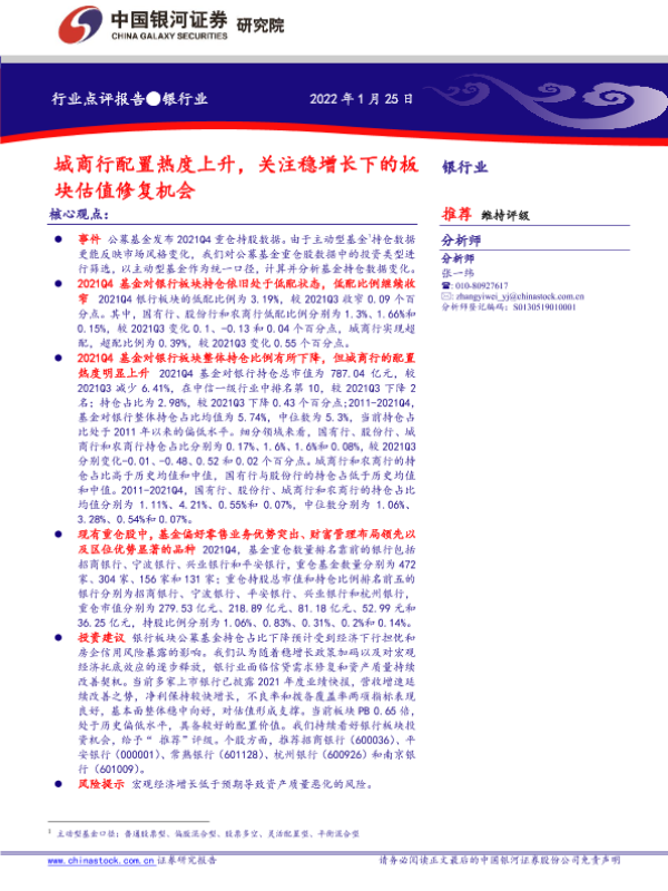 【银河证券】【20220125】城商行配置热度上升,关注稳增长下的板块估值修复机会-5页