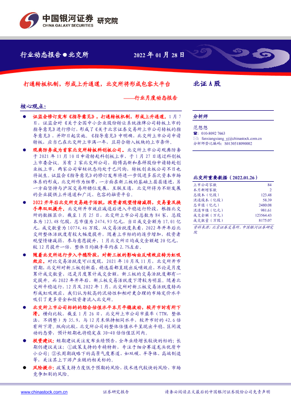 【银河证券】【20220128】证券行业月度动态报告:打通转板机制,形成上升通道,北交所将形成包容大平台-16页
