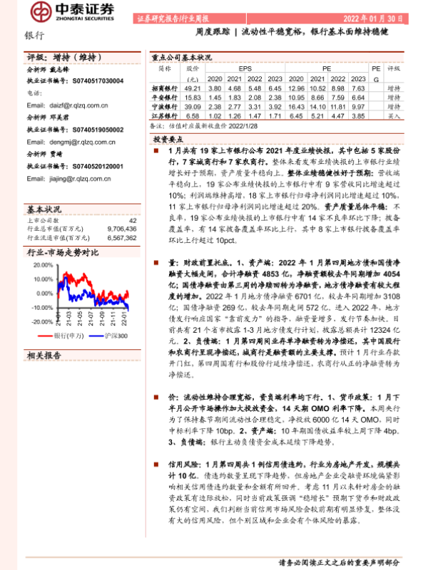 【中泰证券】【20220130】银行周度跟踪:流动性平稳宽裕,银行基本面维持稳健-17页