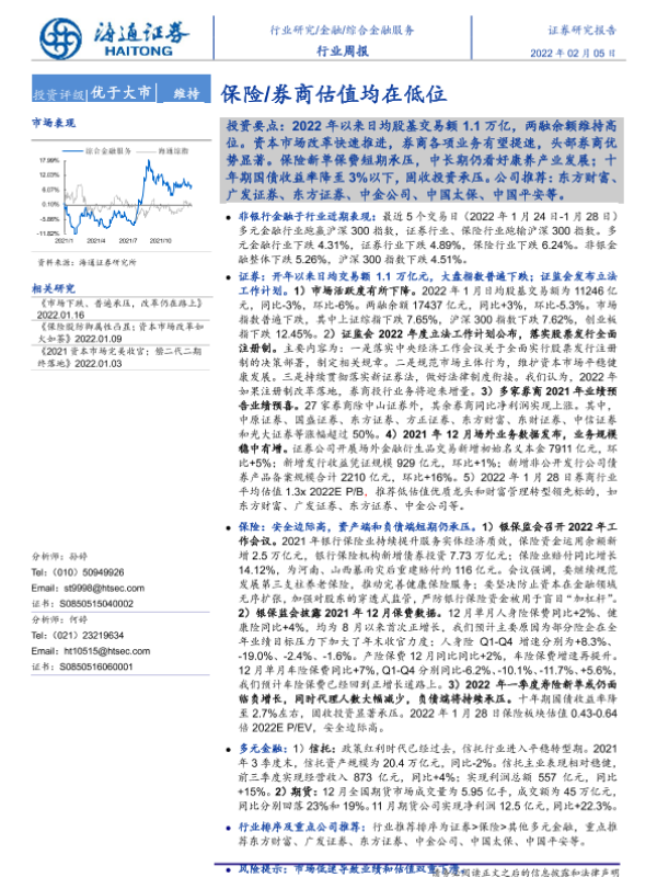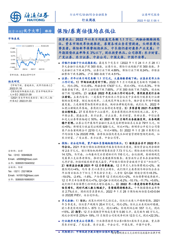 【海通证券】【20220205】综合金融服务:保险 券商估值均在低位-12页