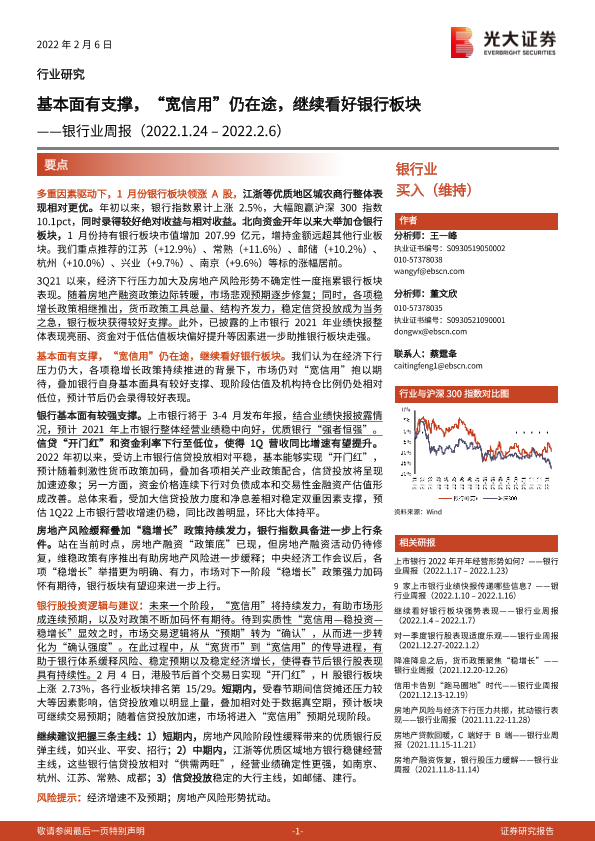 【光大证券】【20220206】银行业周报:基本面有支撑,“宽信用”仍在途,继续看好银行板块-15页