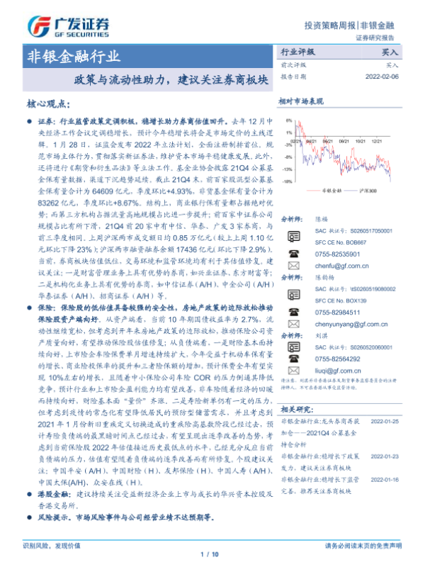 【广发证券】【20220206】非银金融行业投资策略周报:政策与流动性助力,建议关注券商板块-10页