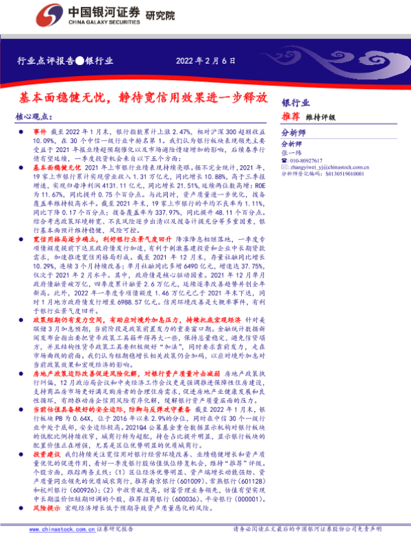【银河证券】【20220206】银行业点评报告:基本面稳健无忧,静待宽信用效果进一步释放-5页