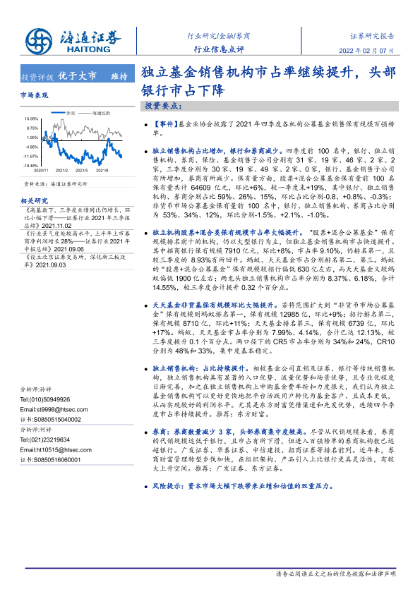 【海通证券】【20220207】券商行业信息点评:独立基金销售机构市占率继续提升,头部银行市占下降-3页
