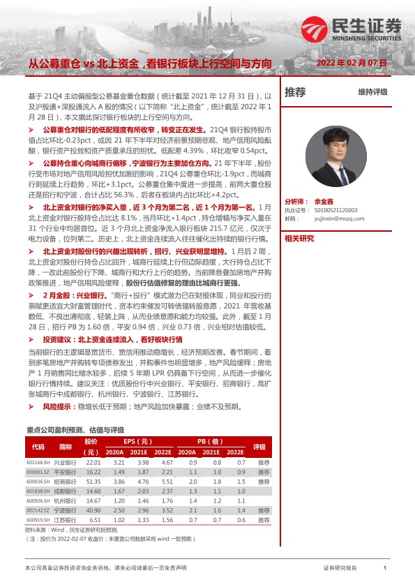 【民生证券】【20220207】从公募重仓vs北上资金,看银行板块上行空间与方向-14页