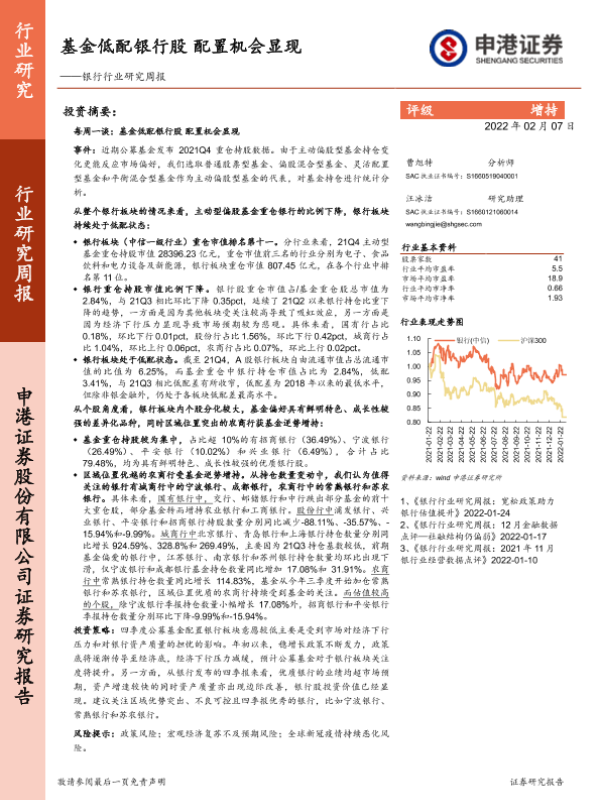 【申港证券】【20220207】银行行业研究周报:基金低配银行股 配置机会显现-12页