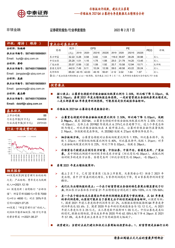 【中泰证券】【20220207】非银板块2021Q4公募持仓季度数据及业绩预告分析-8页