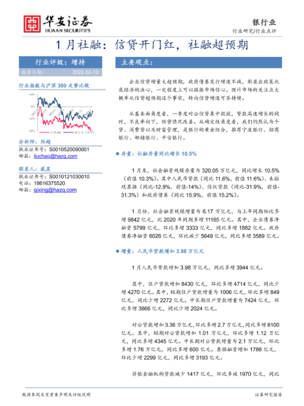 【华安证券】【20220210】1月社融:信贷开门红,社融超预期-7页