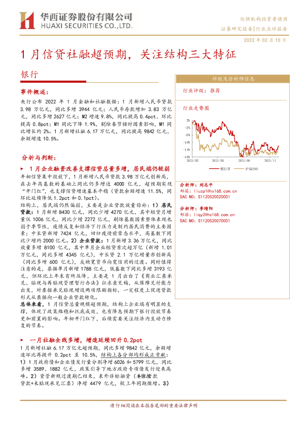 【华西证券】【20220210】1月信贷社融超预期,关注结构三大特征-4页