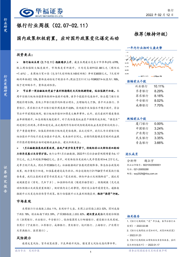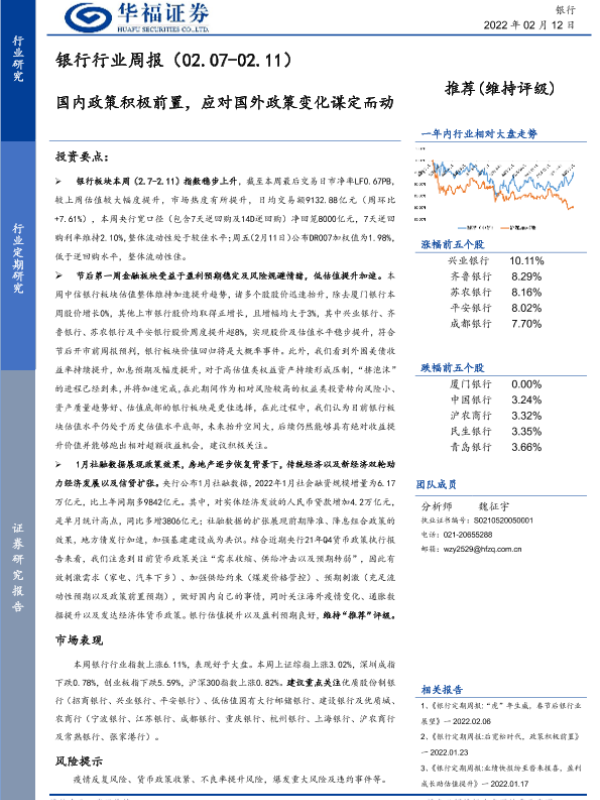 【华福证券】【20220212】银行行业周报:国内政策积极前置,应对国外政策变化谋定而动-19页