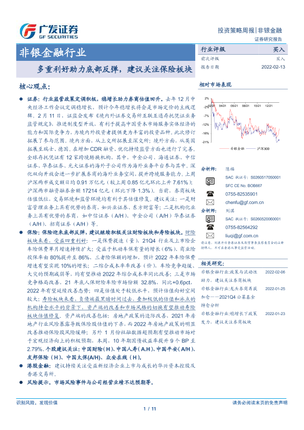 【广发证券】【20220213】非银金融行业投资策略周报:多重利好助力底部反弹,建议关注保险板块-11页