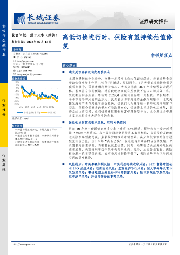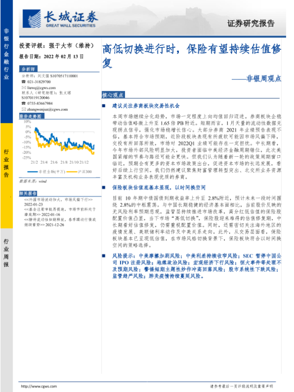 【长城证券】【20220213】高低切换进行时,保险有望持续估值修复-34页