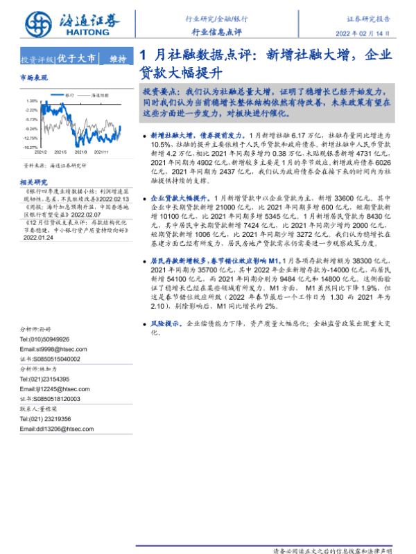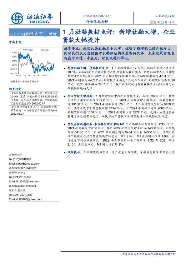 【海通证券】【20220214】1月社融数据点评:新增社融大增,企业贷款大幅提升-2页