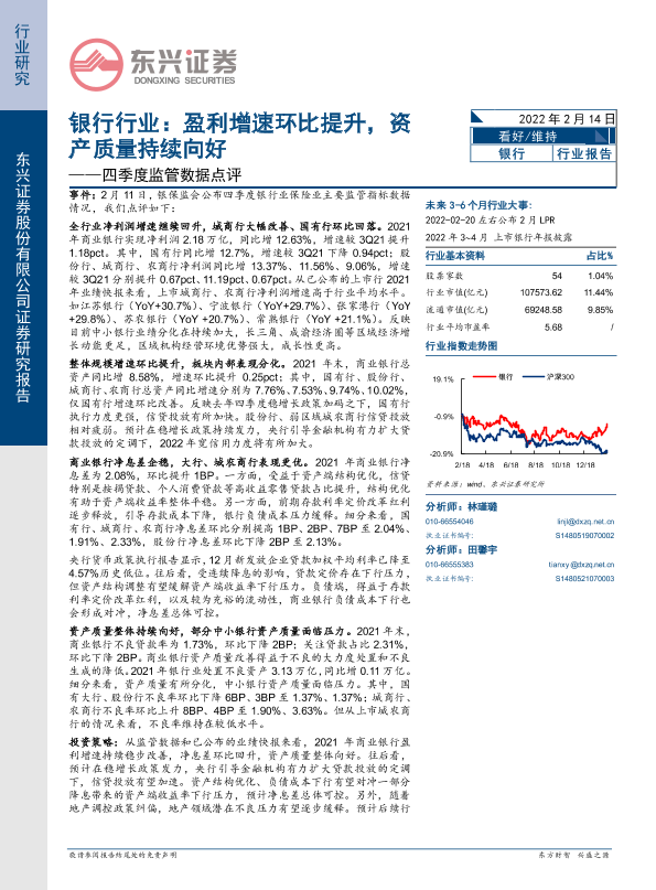 【东兴证券】【20220214】银行行业四季度监管数据点评:盈利增速环比提升,资产质量持续向好-7页