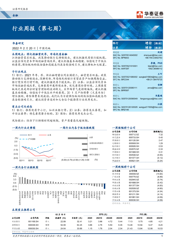 【华泰证券】【20220220】金融行业周报(第七周)-22页