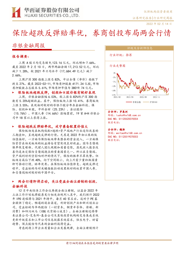 【华西证券】【20220214】非银金融周报:保险超跌反弹赔率优,券商创投布局两会行情-13页