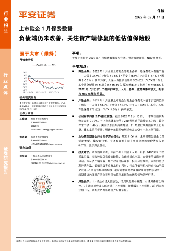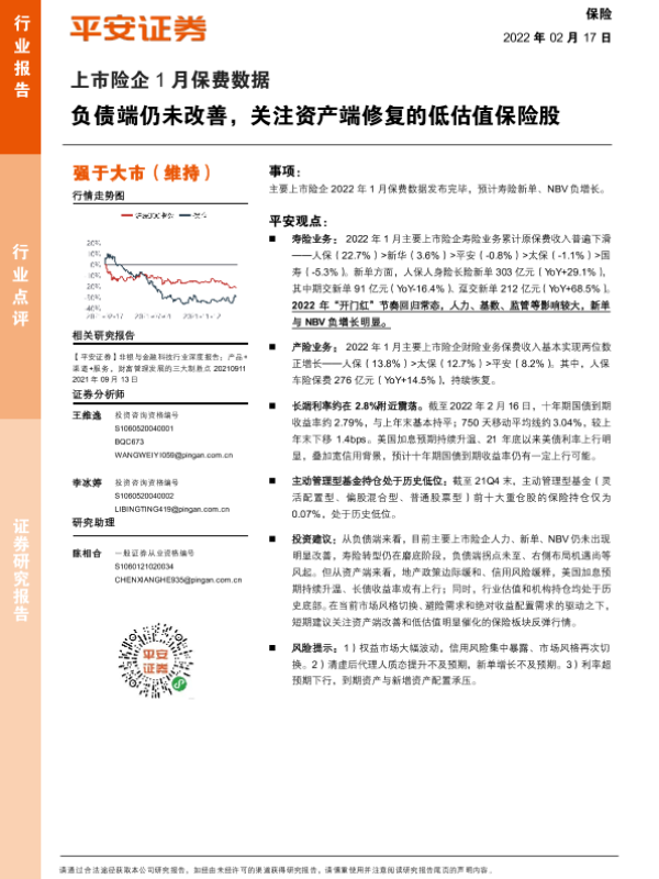 【平安证券】【20220217】保险上市险企1月保费数据:负债端仍未改善,关注资产端修复的低估值保险股-3页