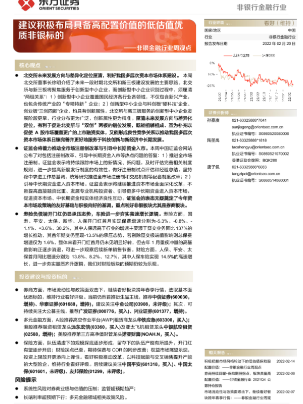 【东方证券】【20220220】非银金融行业周观点:建议积极布局具备高配置价值的低估值优质非银标的-15页