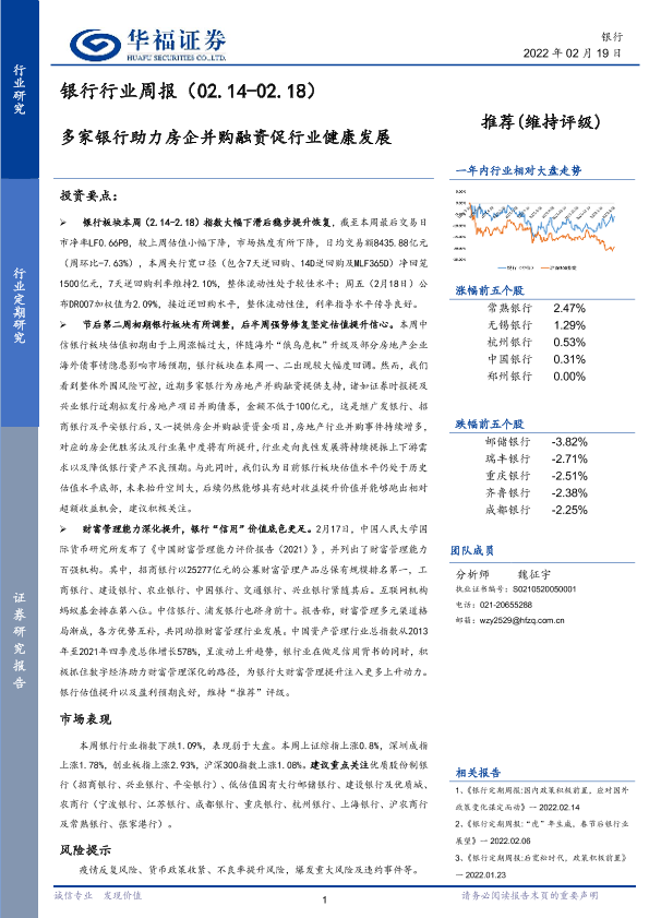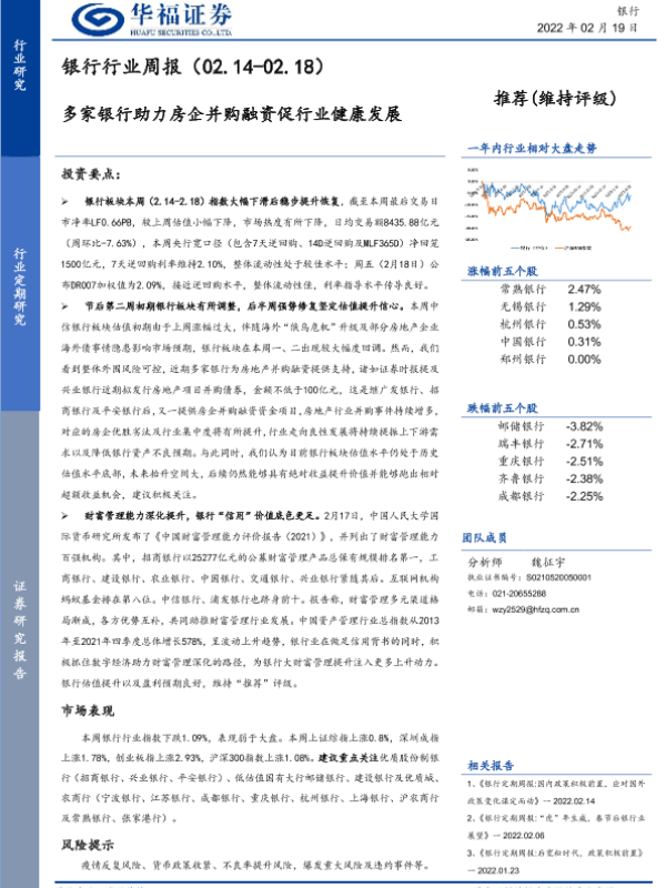 【华福证券】【20220219】银行行业周报:多家银行助力房企并购融资促行业健康发展-14页