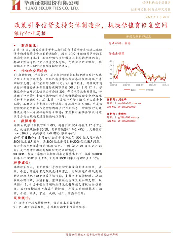 【华西证券】【20220220】银行行业周报:政策引导信贷支持实体制造业,板块估值有修复空间-8页