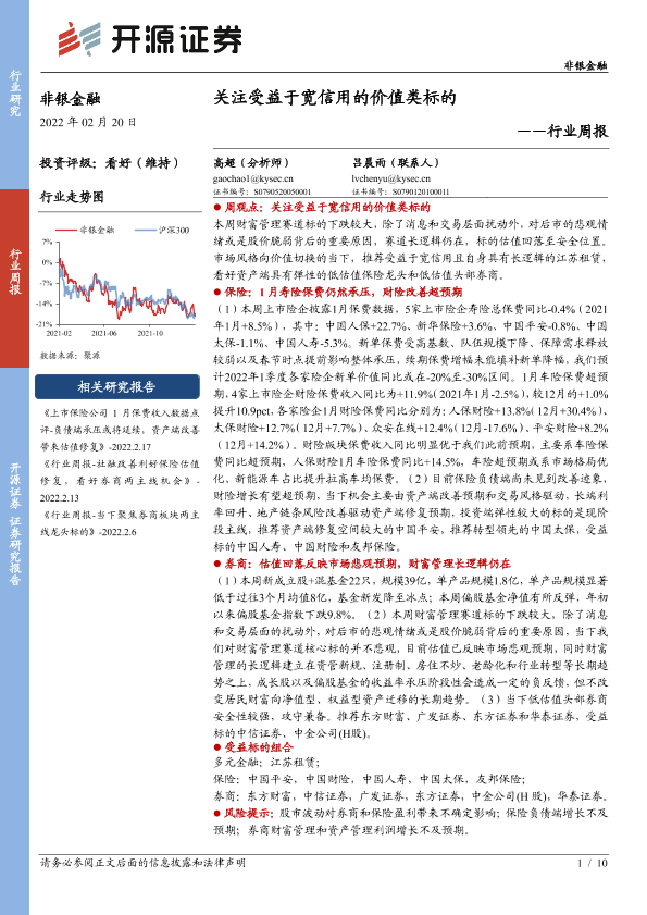 【开源证券】【20220220】非银金融行业周报:关注受益于宽信用的价值类标的-10页