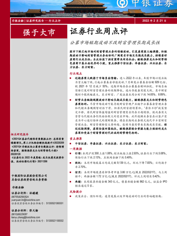 【中银证券】【20220221】证券行业周点评:公募市场短期波动不改财富管理长期成长性-7页