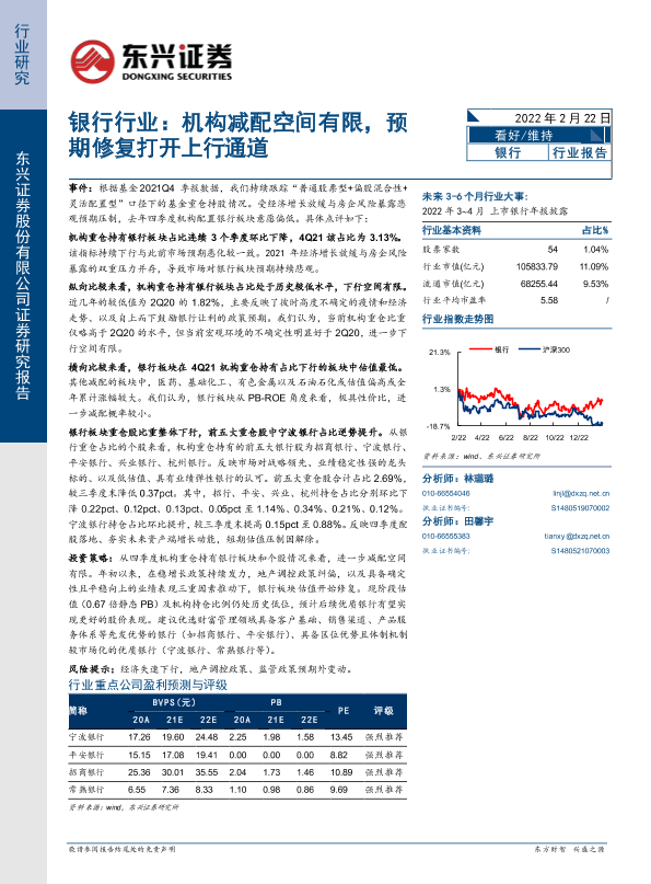 【东兴证券】【20220222】银行行业:机构减配空间有限,预期修复打开上行通道-6页