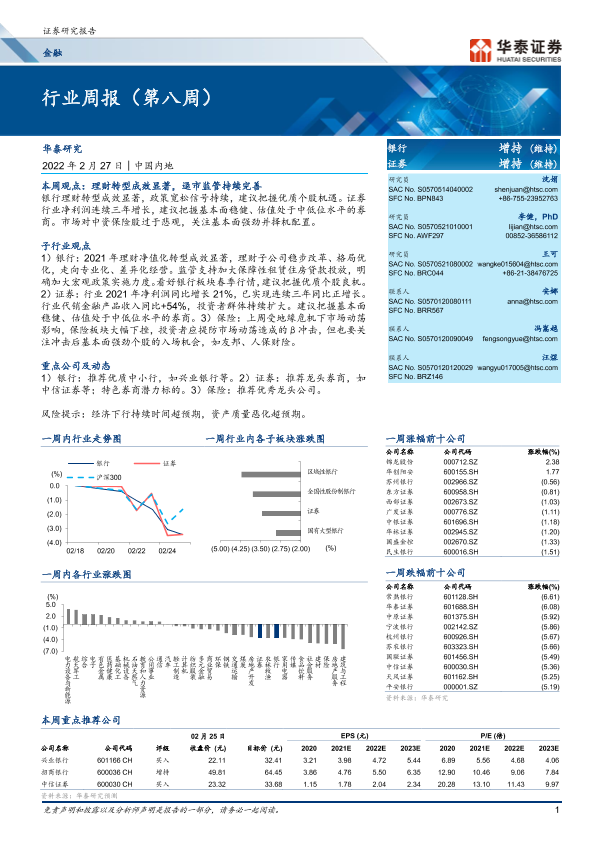 【华泰证券】【20220227】金融行业周报(第八周)-29页
