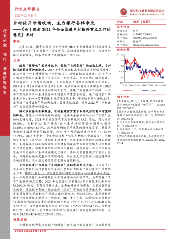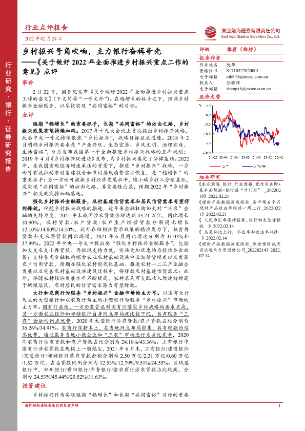 【东亚前海证券】【20220224】关于做好2022年全面推进乡村振兴重点工作的意见点评-9页