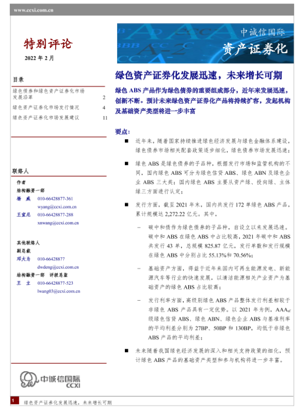 【中诚信国际】【202202】绿色资产证券化发展迅速,未来增长可期-13页