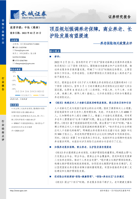 【长城证券】【20220225】养老保险相关政策点评:顶层规划强调养老保障,商业养老、长护险发展有望提速-14页
