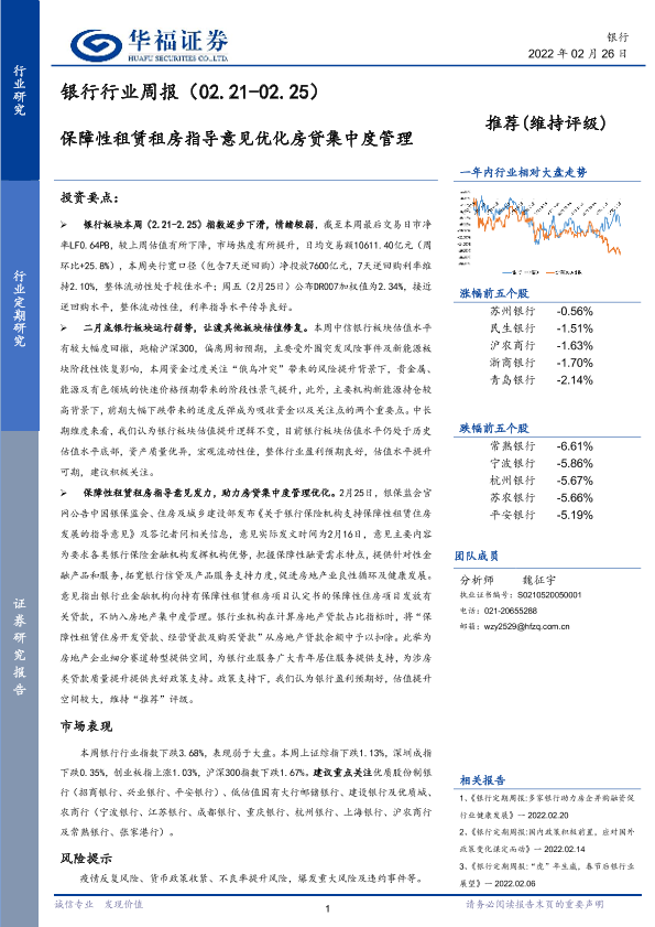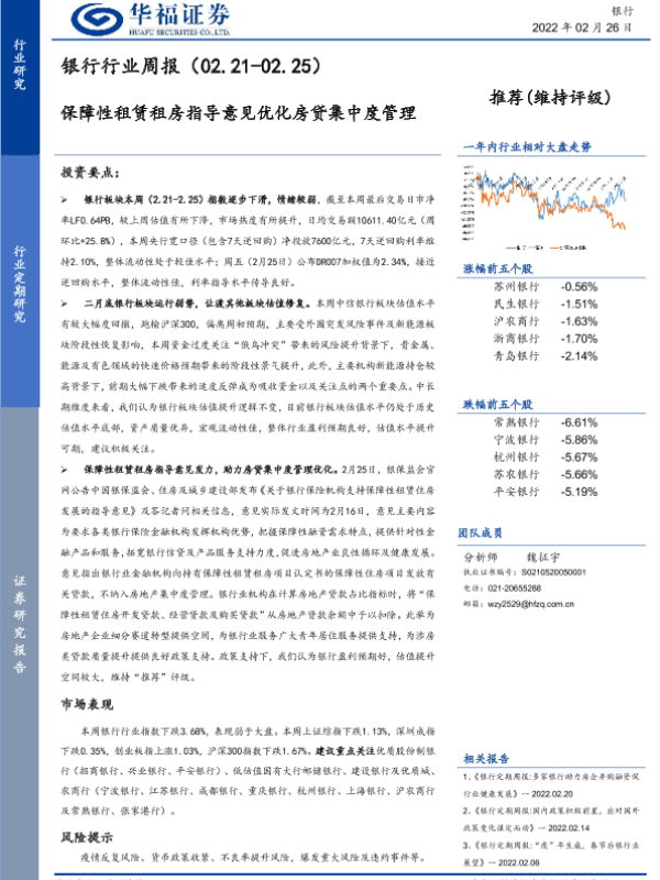 【华福证券】【20220226】银行行业周报:保障性租赁租房指导意见优化房贷集中度管理-13页