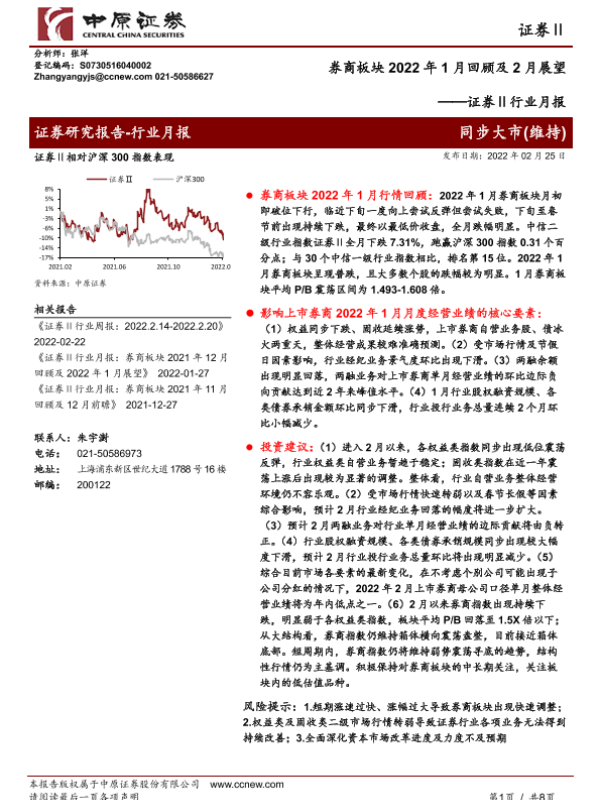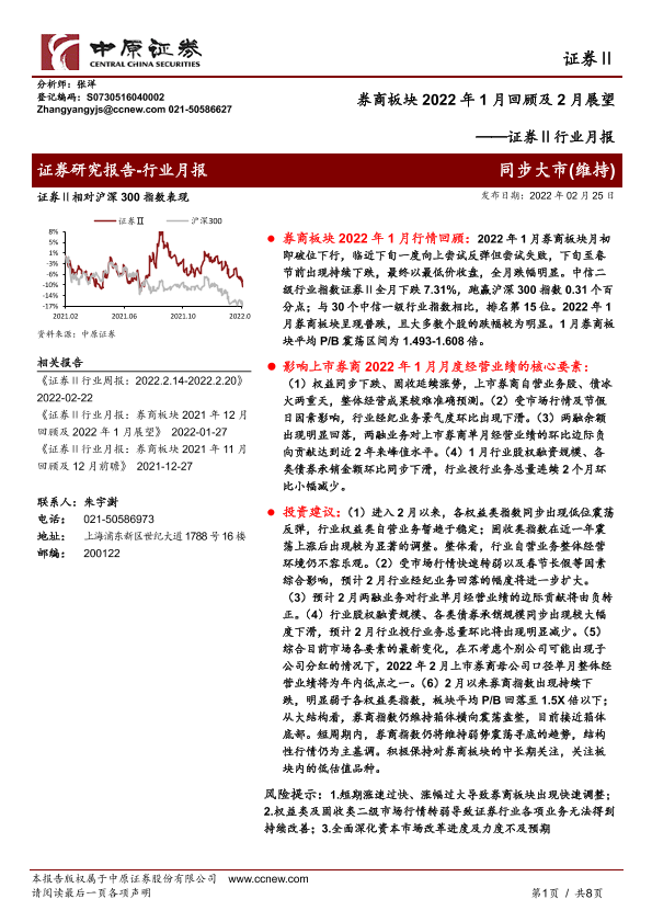 【中原证券】【20220225】券商板块2022年1月回顾及2月展望-8页