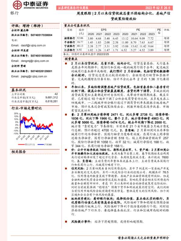 【中泰证券】【20220226】2月以来信贷投放总量不弱结构分化,房地产信贷政策陆续放松-17页