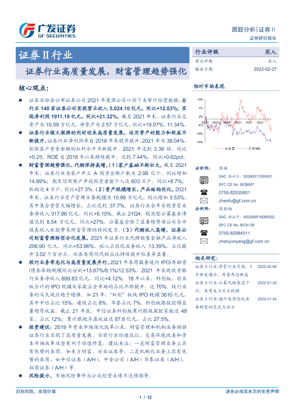【广发证券】【20220227】证券Ⅱ行业跟踪分析:证券行业高质量发展,财富管理趋势强化-12页