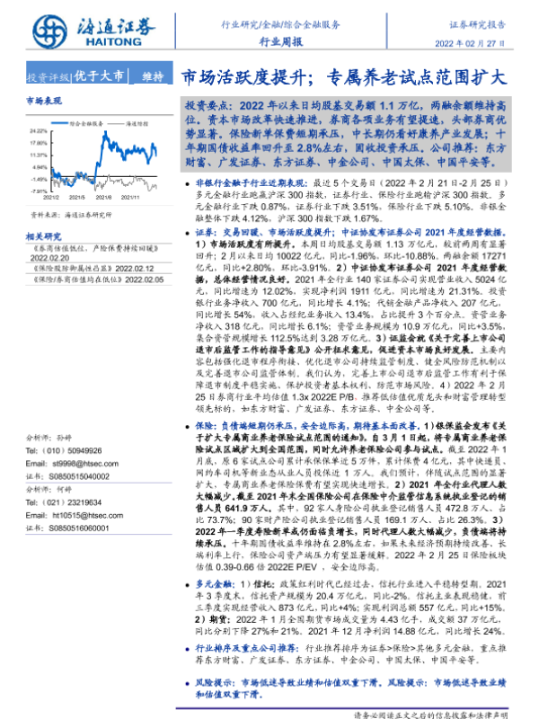 【海通证券】【20220227】综合金融服务行业周报:市场活跃度提升;专属养老试点范围扩大-10页