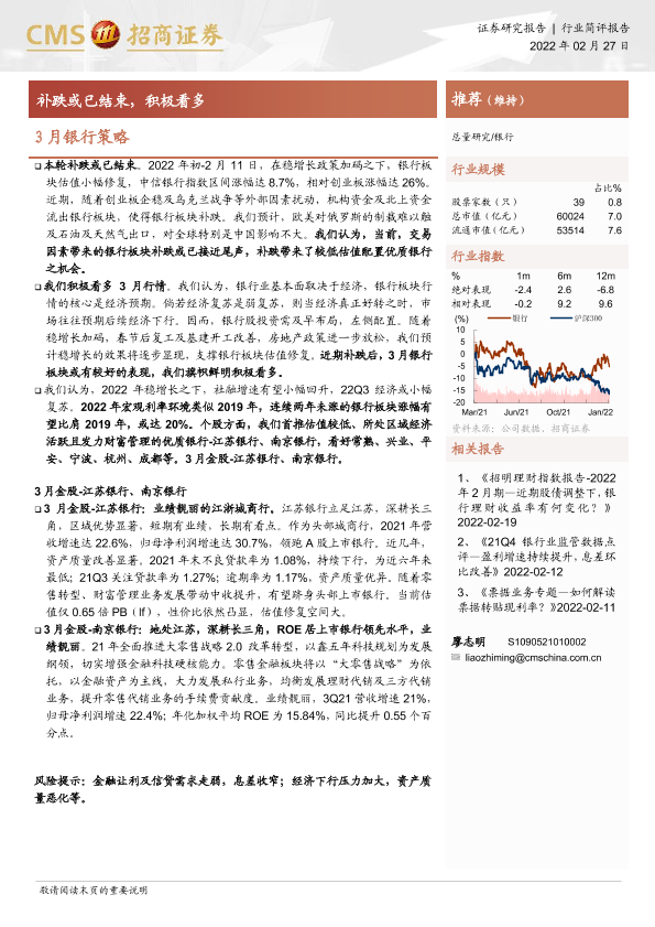 【海通证券】【20220227】3月银行策略:补跌或已结束,积极看多-4页