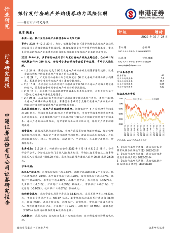 【申港证券】【20220228】银行发行房地产并购债券助力风险化解-10页