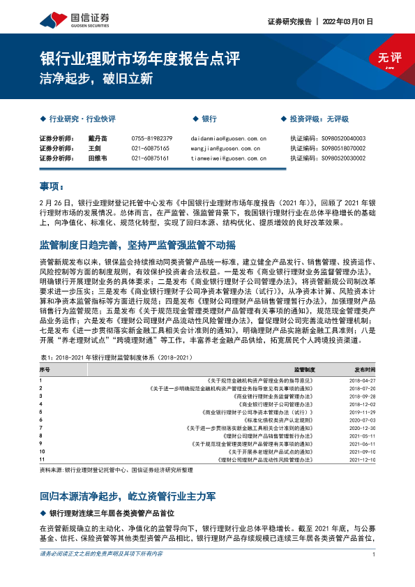 【国信证券】【20220301】银行业理财市场年度报告点评:洁净起步,破旧立新-10页