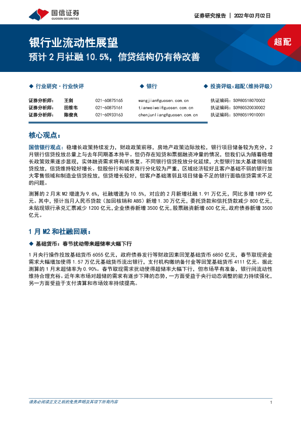 【国信证券】【20220302】银行业流动性展望:预计2月社融10.5%,信贷结构仍有待改善-6页