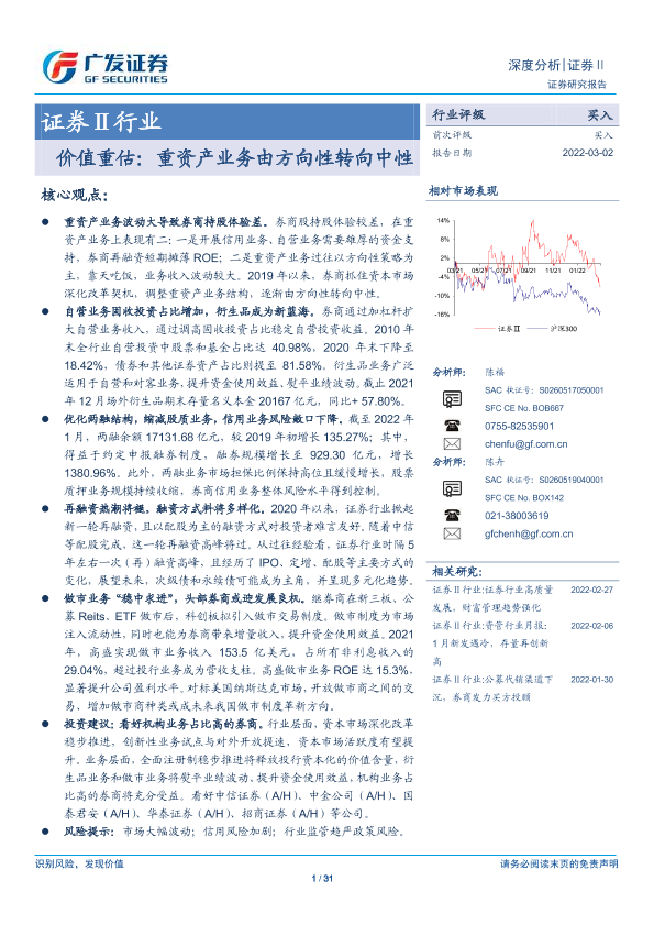 【广发证券】【20220302】证券Ⅱ行业:价值重估:重资产业务由方向性转向中性-31页