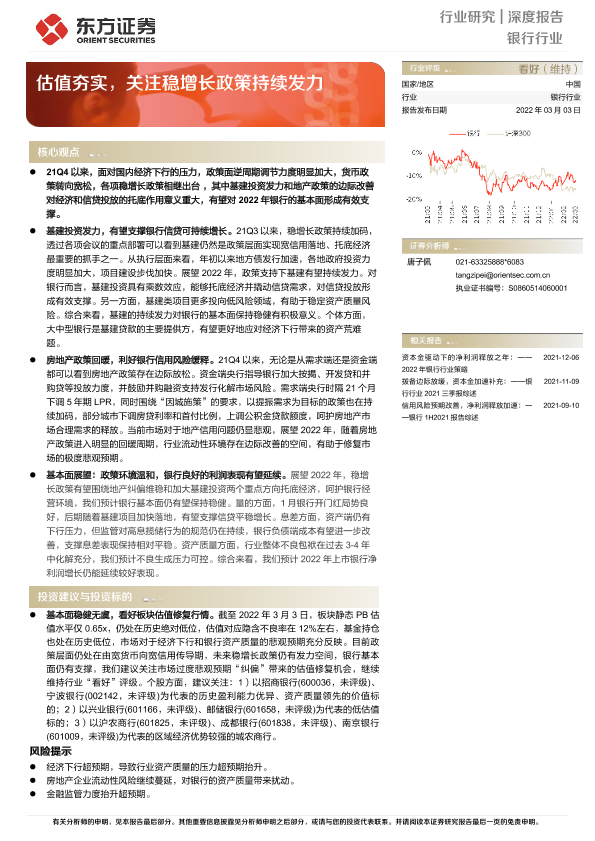 【东方证券】【20220303】银行行业深度报告:估值夯实,关注稳增长政策持续发力-33页