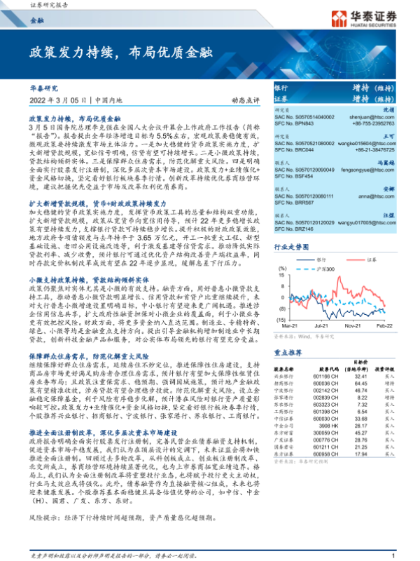 【华泰证券】【20220305】金融动态点评:政策发力持续,布局优质金融-10页