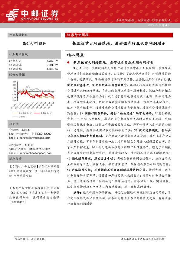 【中邮证券】【20220304】证券行业周报:新三板重大利好落地,看好证券行业长期利润增量-11页