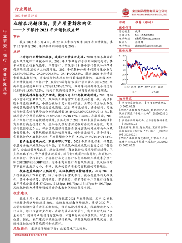 【东亚前海证券】【20220307】上市银行2021年业绩快报点评:业绩表现超预期,资产质量持续向优-19页