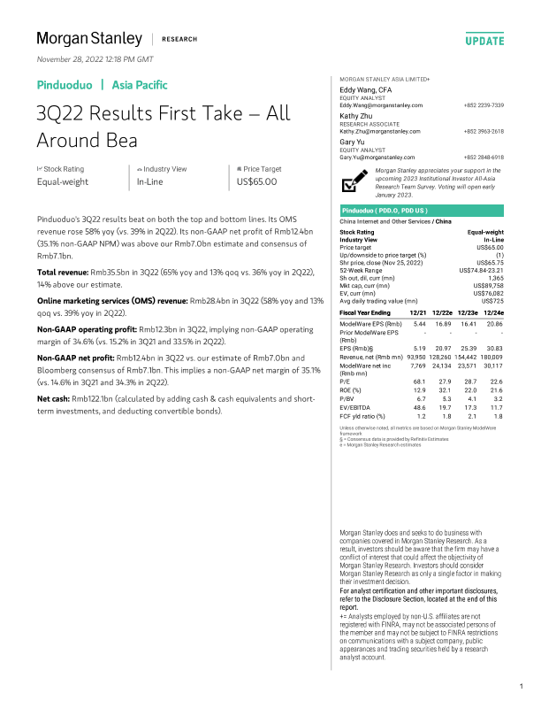 【Morgan Stanley】【20221128】Q-Morgan Stanley-Pinduoduo 3Q22 Results First Take – All Around Bea-7页